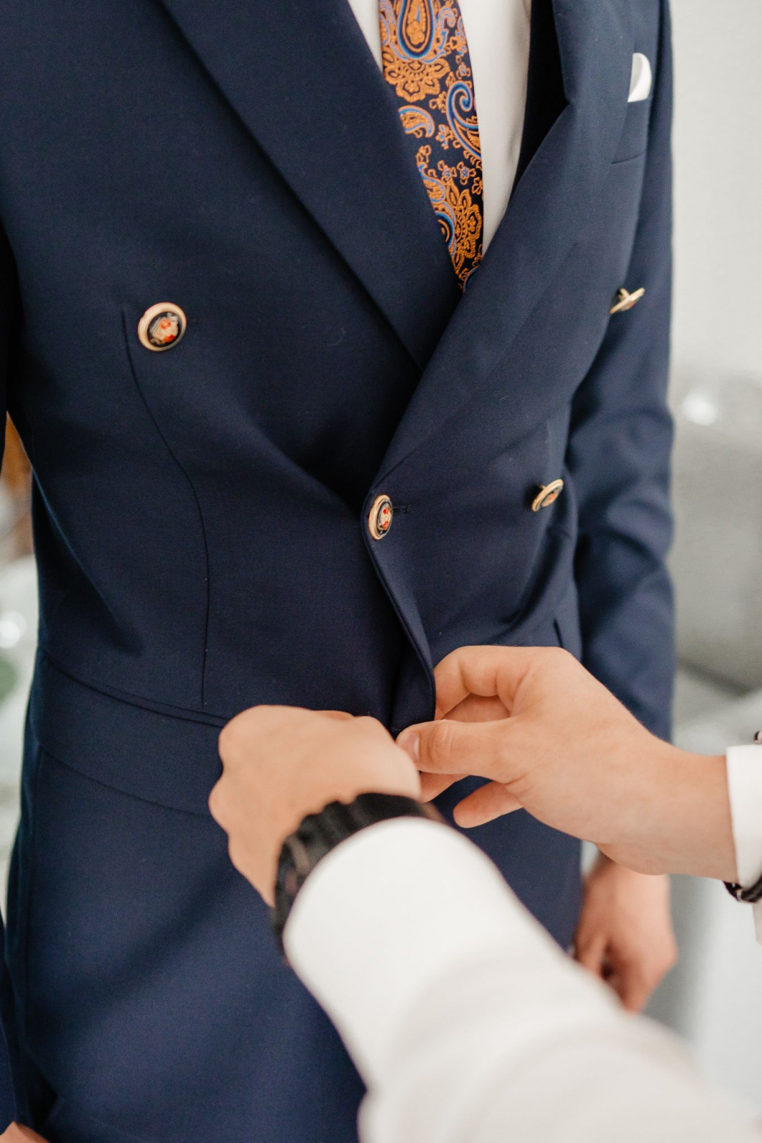 ✨ Batistă de buzunar – detaliul subtil care face diferența.