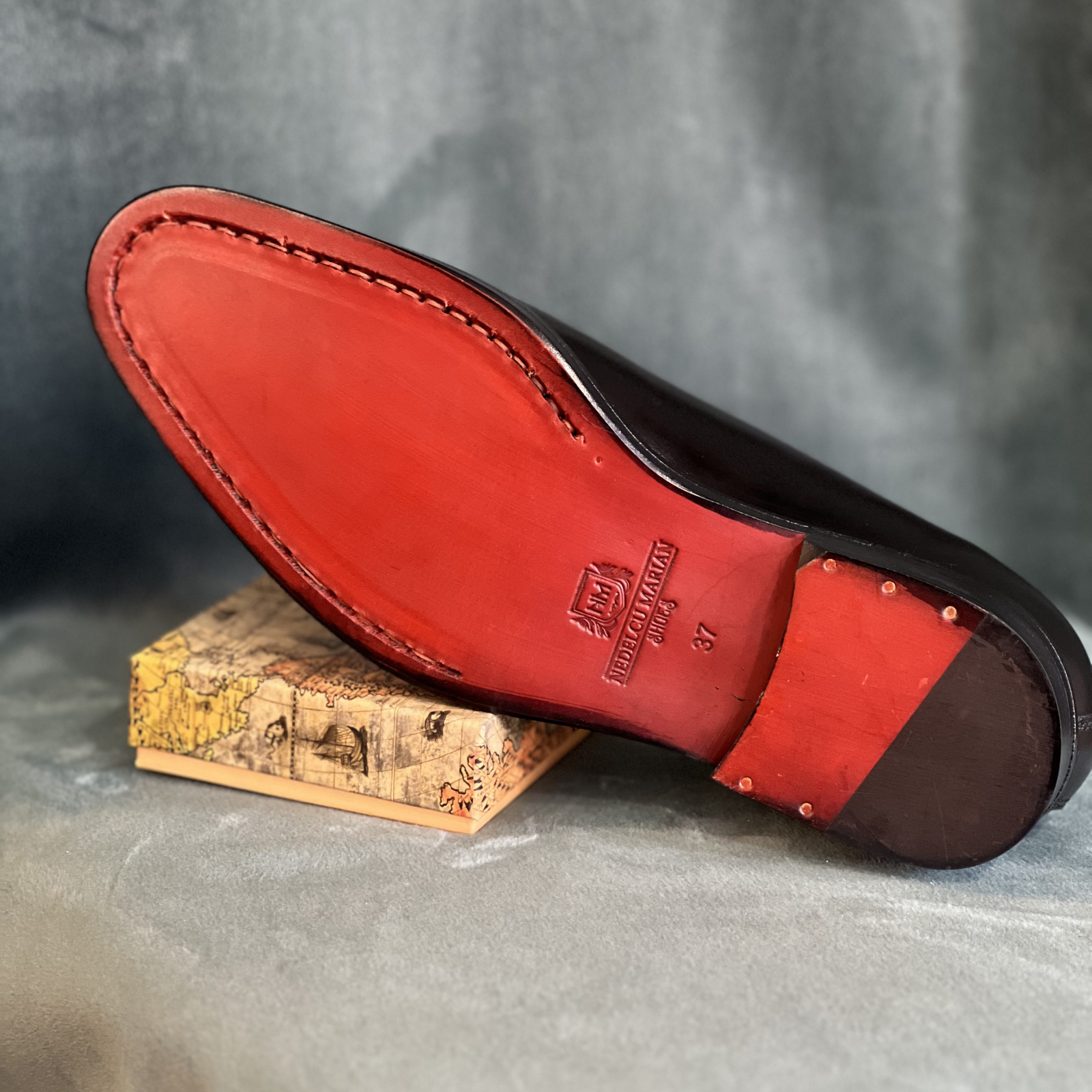 Se poate alege orice combinatie de model, culoare si talpa; sunt disponibile 3 tipuri de tapli: talpa din tunit (989 lei/pantofii), tapla din piele (1189 lei/pantofii), talpa din piele cusuta manual (1389 lei/pantofii)